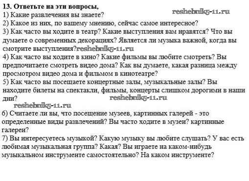 Готовая домашняя работа с ответами по Английскому языку за 8 класс Афанасьева, Михеева Рабочая тетрадь Новый курс Часть 1, 2 Дрофа 2017 ФГОС - Unit 6. Our Favourite Pastimes 13