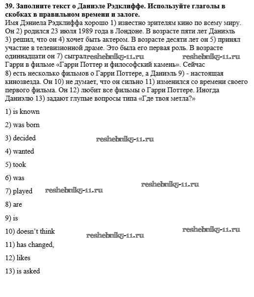 Готовая домашняя работа с ответами по Английскому языку за 8 класс Афанасьева, Михеева Рабочая тетрадь Новый курс Часть 1, 2 Дрофа 2017 ФГОС - Unit 6. Our Favourite Pastimes 39