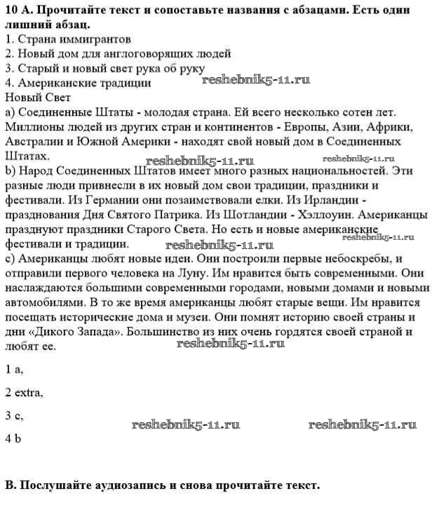 Готовая домашняя работа с ответами по Английскому языку за 8 класс Афанасьева, Михеева Учебник Новый курс Дрофа 2017 ФГОС - Step 1 10