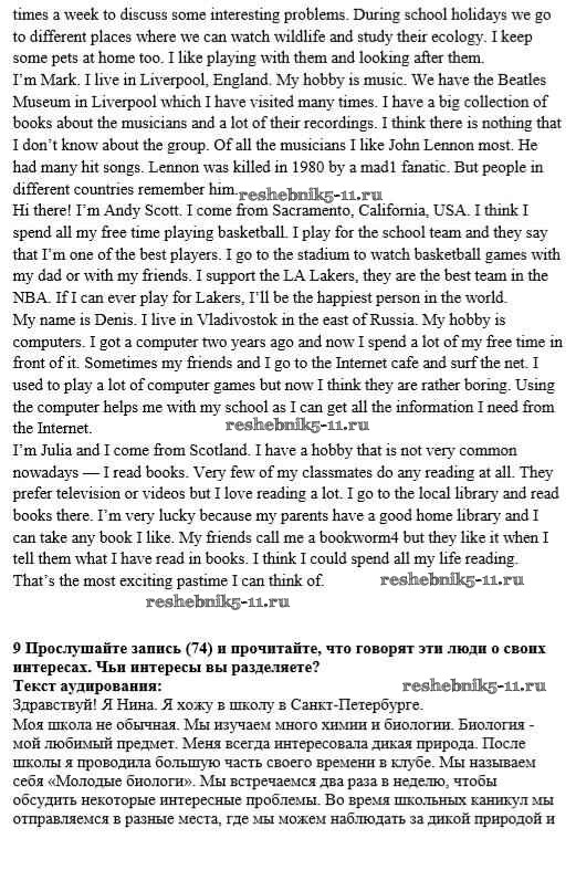 Готовая домашняя работа с ответами по Английскому языку за 8 класс Афанасьева, Михеева Учебник Новый курс Дрофа 2017 ФГОС - Step 1 9