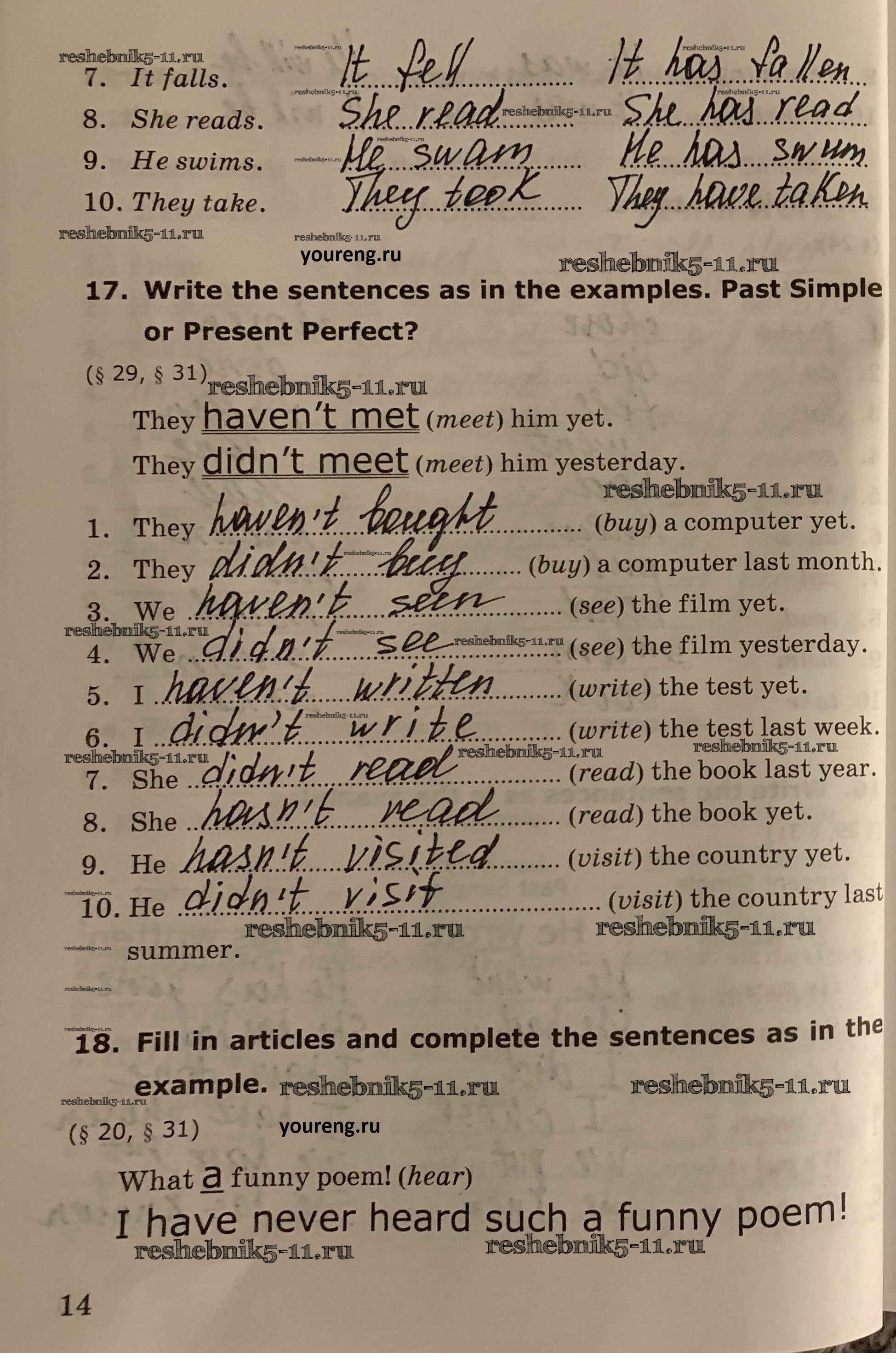 Готовая домашняя работа с ответами по Английскому языку за 8 класс Барашкова Сборник упражнений УМК Часть 1, 2 Экзамен 2018 ФГОС - Unit 1 стр.14