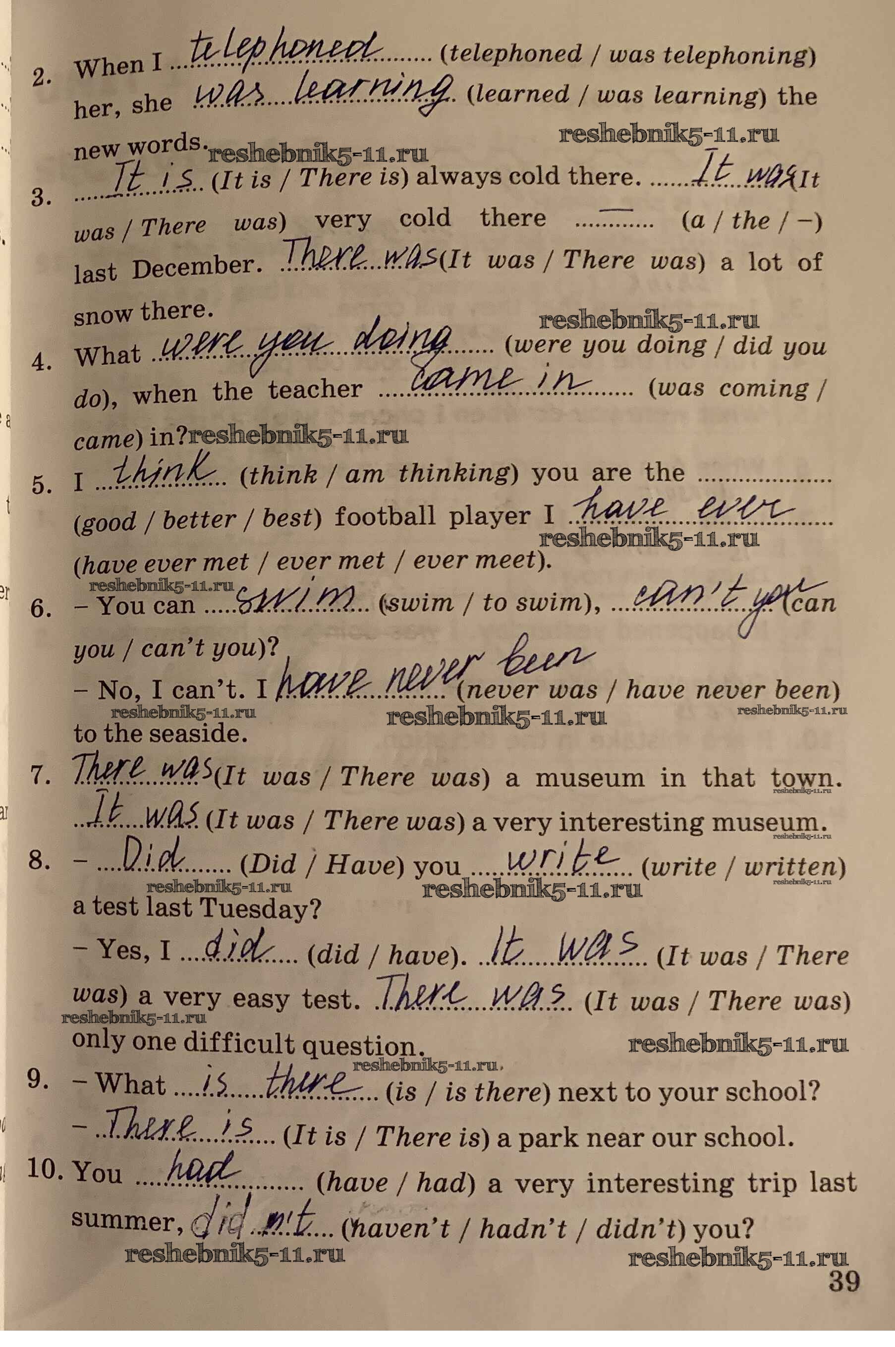 Готовая домашняя работа с ответами по Английскому языку за 8 класс Барашкова Сборник упражнений УМК Часть 1, 2 Экзамен 2018 ФГОС - Unit 1 стр.39