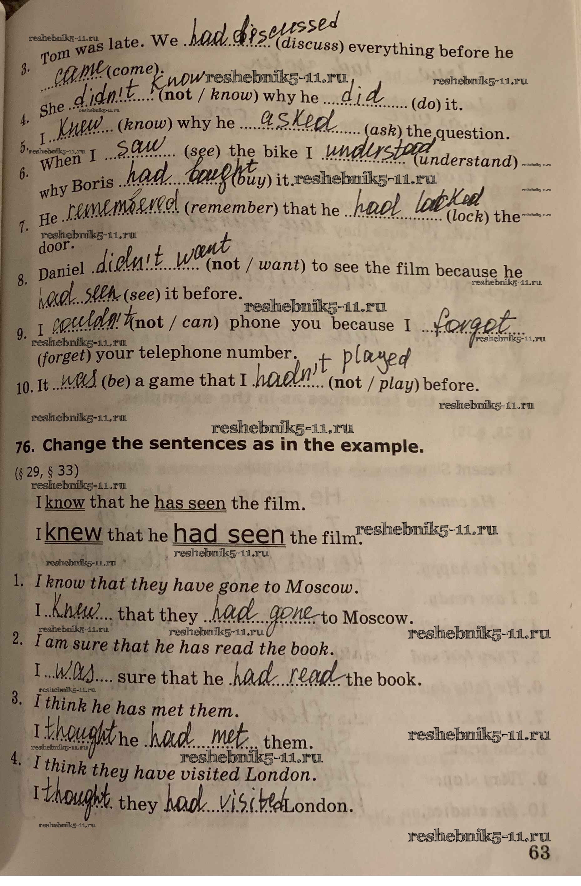 Готовая домашняя работа с ответами по Английскому языку за 8 класс Барашкова Сборник упражнений УМК Часть 1, 2 Экзамен 2018 ФГОС - Unit 1 стр.63