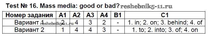 Готовая домашняя работа с ответами по Английскому языку за 8 класс Лысакова Контрольно-измерительные материалы (КИМ) ВАКО 2018 ФГОС - Тесты Test №16. Mass media - good or bad