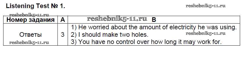 Решебник / приложение / listening test / listening test №1