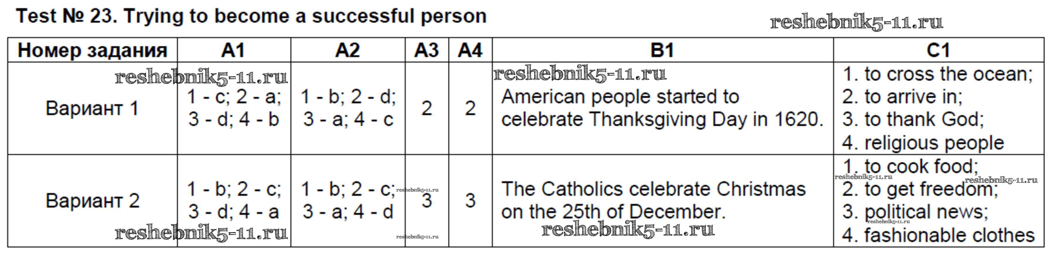 Готовая домашняя работа с ответами по Английскому языку за 8 класс Лысакова Контрольно-измерительные материалы (КИМ) ВАКО 2018 ФГОС - Тесты Test №23. Trying to become a successful person