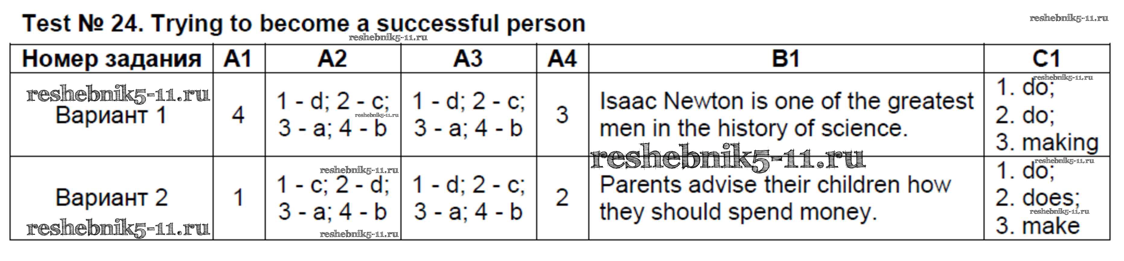 Готовая домашняя работа с ответами по Английскому языку за 8 класс Лысакова Контрольно-измерительные материалы (КИМ) ВАКО 2018 ФГОС - Тесты Test №24. Trying to become a successful person