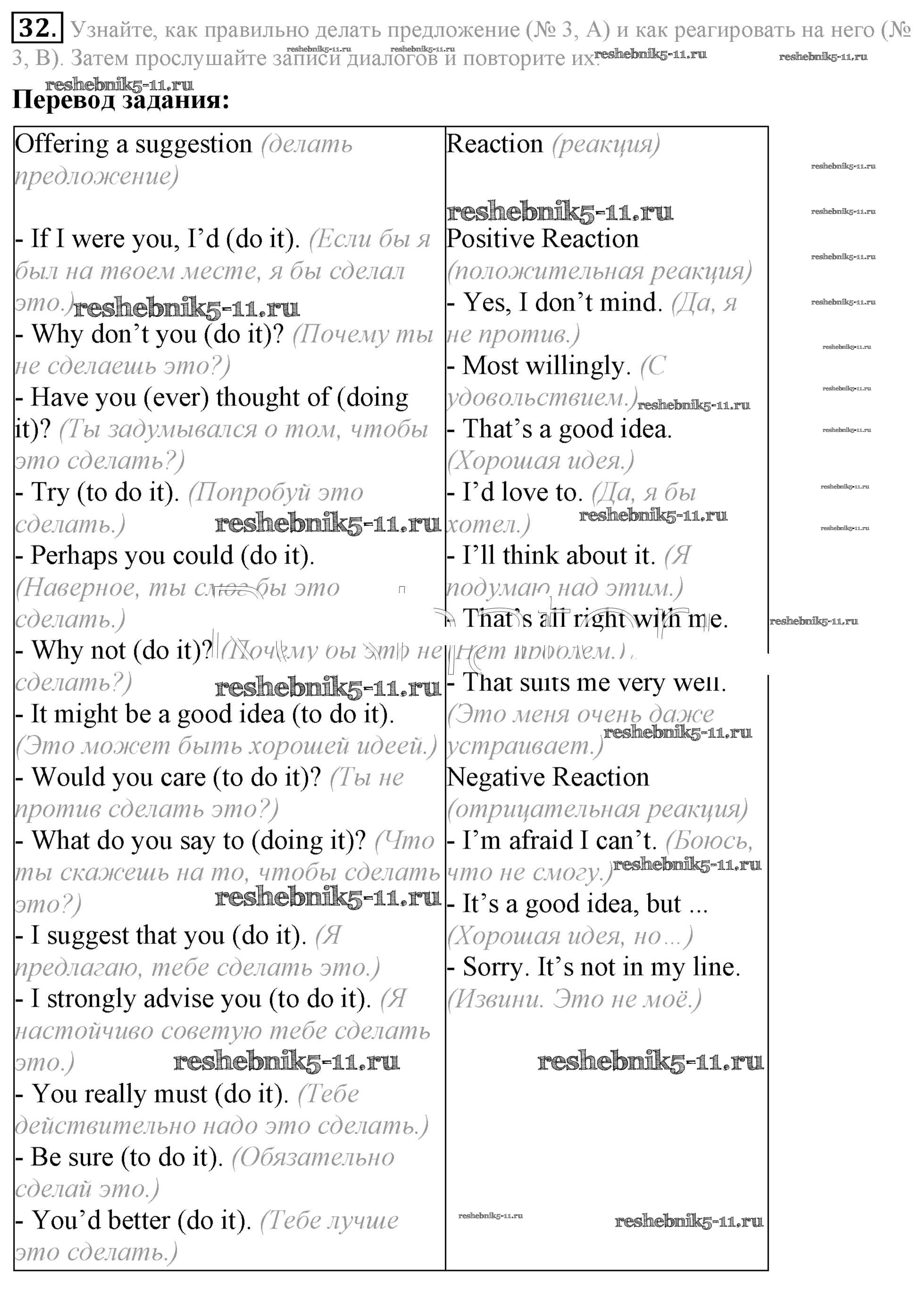 Готовая домашняя работа с ответами по Английскому языку за 8 класс Афанасьева, Михеева Учебник Углубленный уровень Просвещение 2014 ФГОС - Unit 1 32