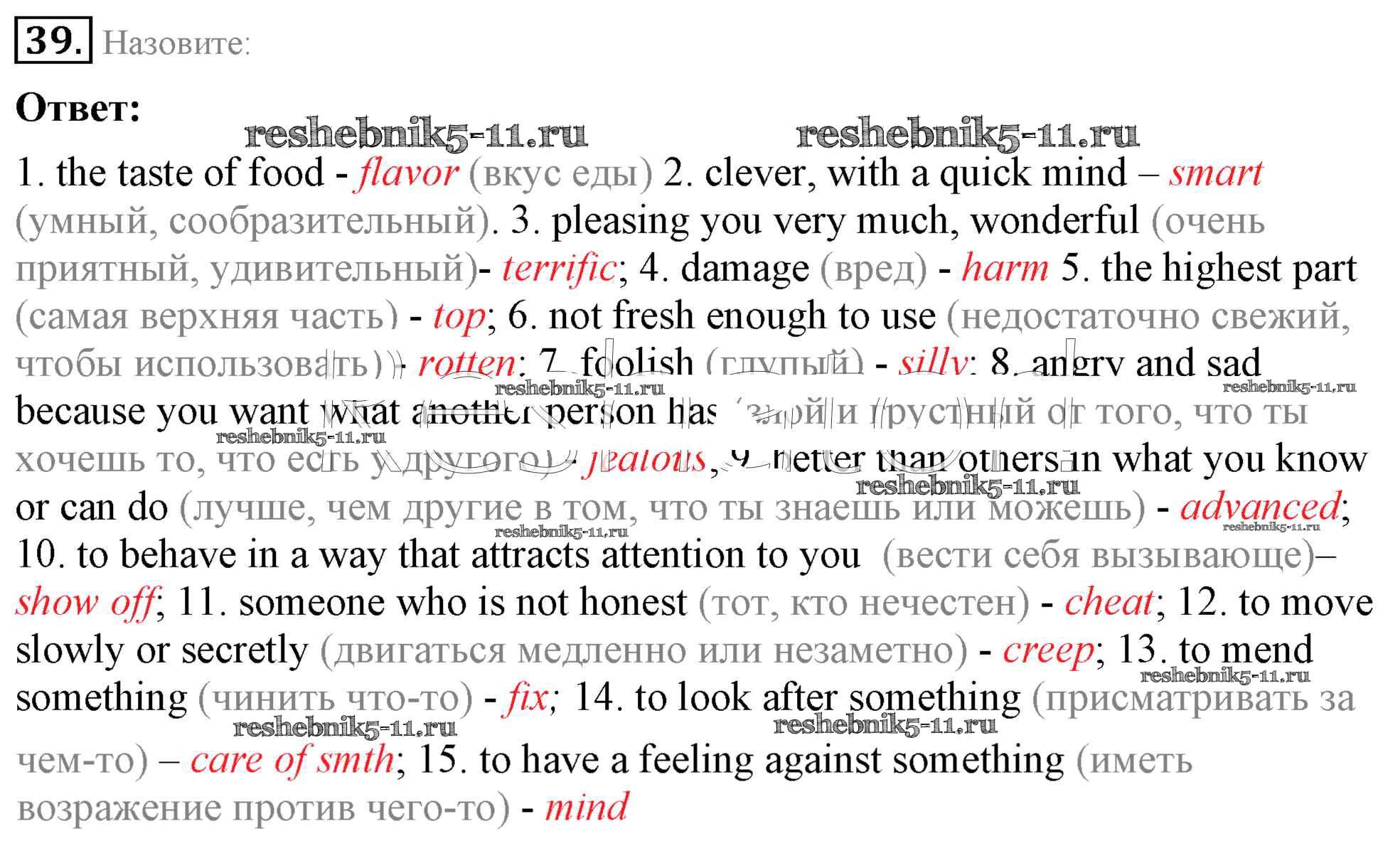 Готовая домашняя работа с ответами по Английскому языку за 8 класс Афанасьева, Михеева Учебник Углубленный уровень Просвещение 2014 ФГОС - Unit 1 39