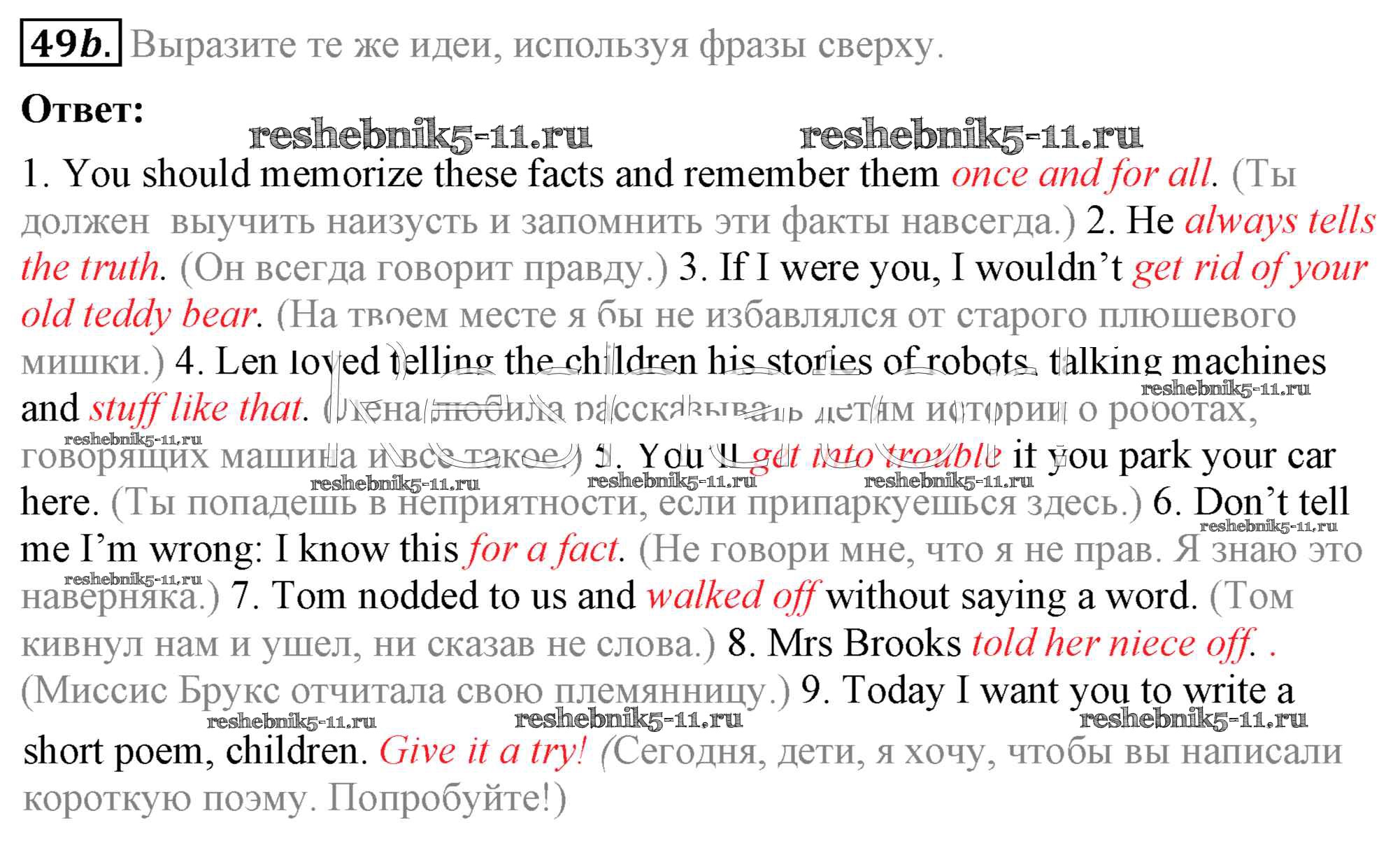 Готовая домашняя работа с ответами по Английскому языку за 8 класс Афанасьева, Михеева Учебник Углубленный уровень Просвещение 2014 ФГОС - Unit 1 49b