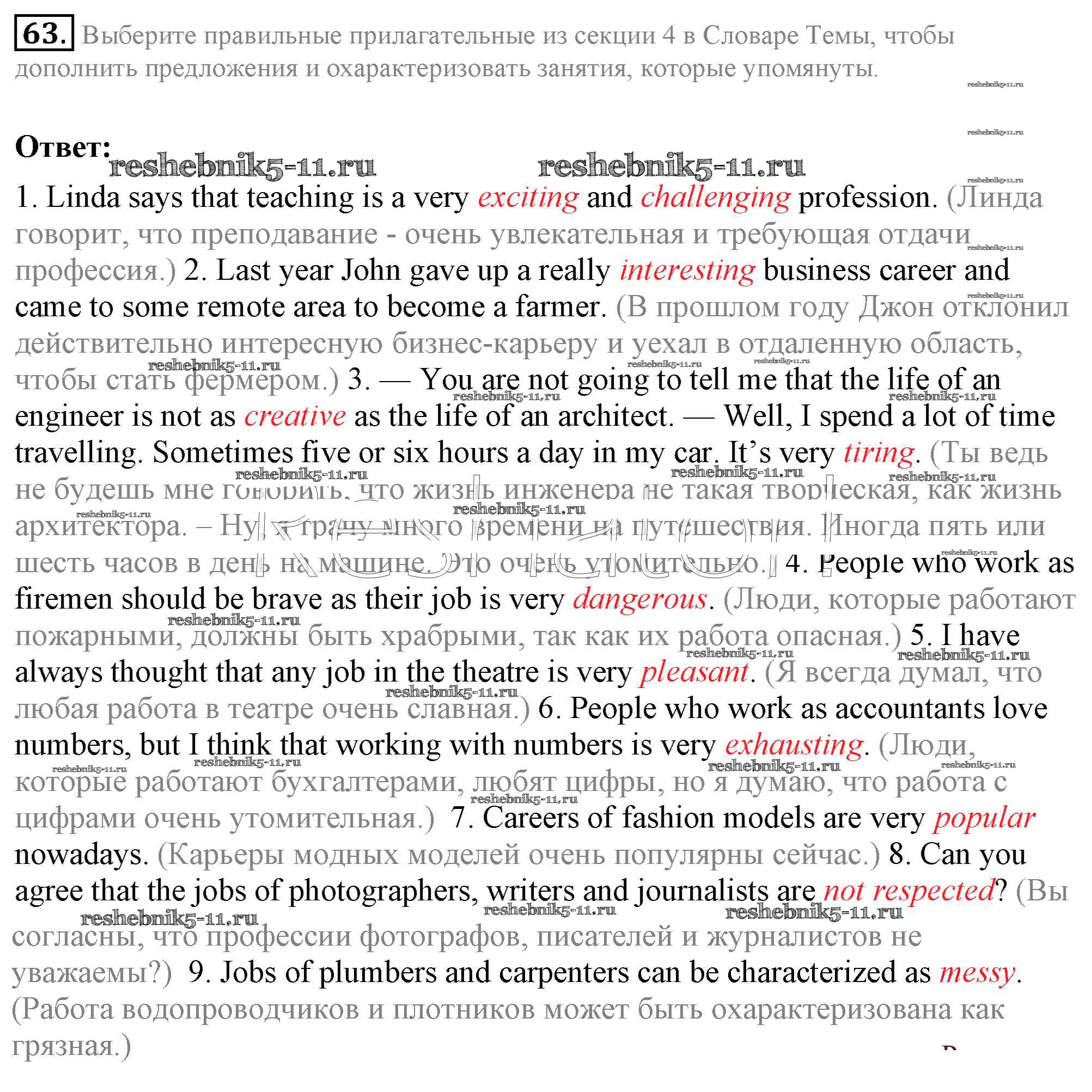 Готовая домашняя работа с ответами по Английскому языку за 8 класс Афанасьева, Михеева Учебник Углубленный уровень Просвещение 2014 ФГОС - Unit 1 63