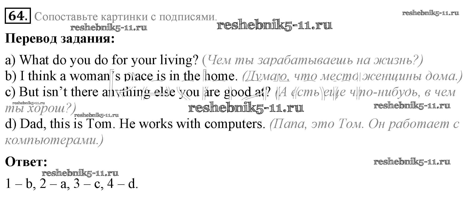 Готовая домашняя работа с ответами по Английскому языку за 8 класс Афанасьева, Михеева Учебник Углубленный уровень Просвещение 2014 ФГОС - Unit 1 64