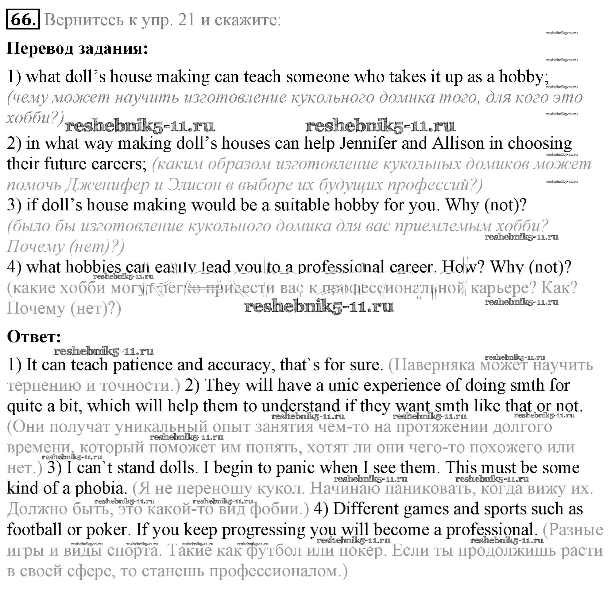 Готовая домашняя работа с ответами по Английскому языку за 8 класс Афанасьева, Михеева Учебник Углубленный уровень Просвещение 2014 ФГОС - Unit 1 66