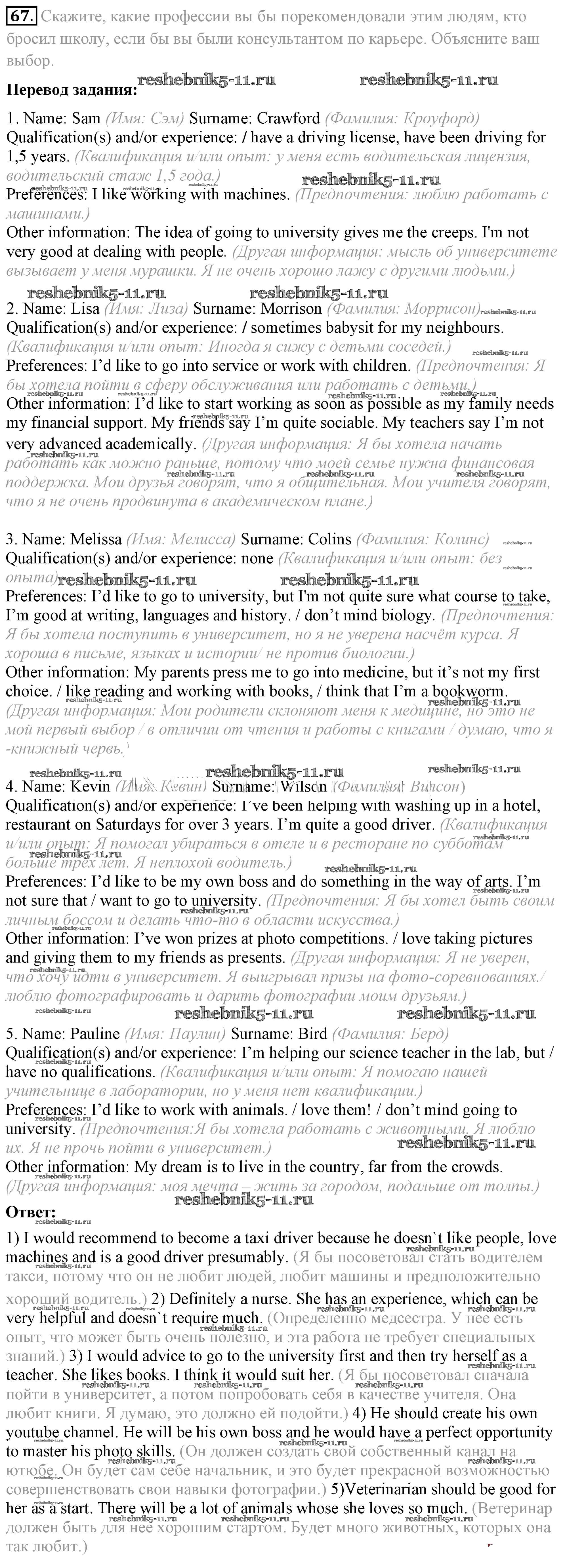 Готовая домашняя работа с ответами по Английскому языку за 8 класс Афанасьева, Михеева Учебник Углубленный уровень Просвещение 2014 ФГОС - Unit 1 67