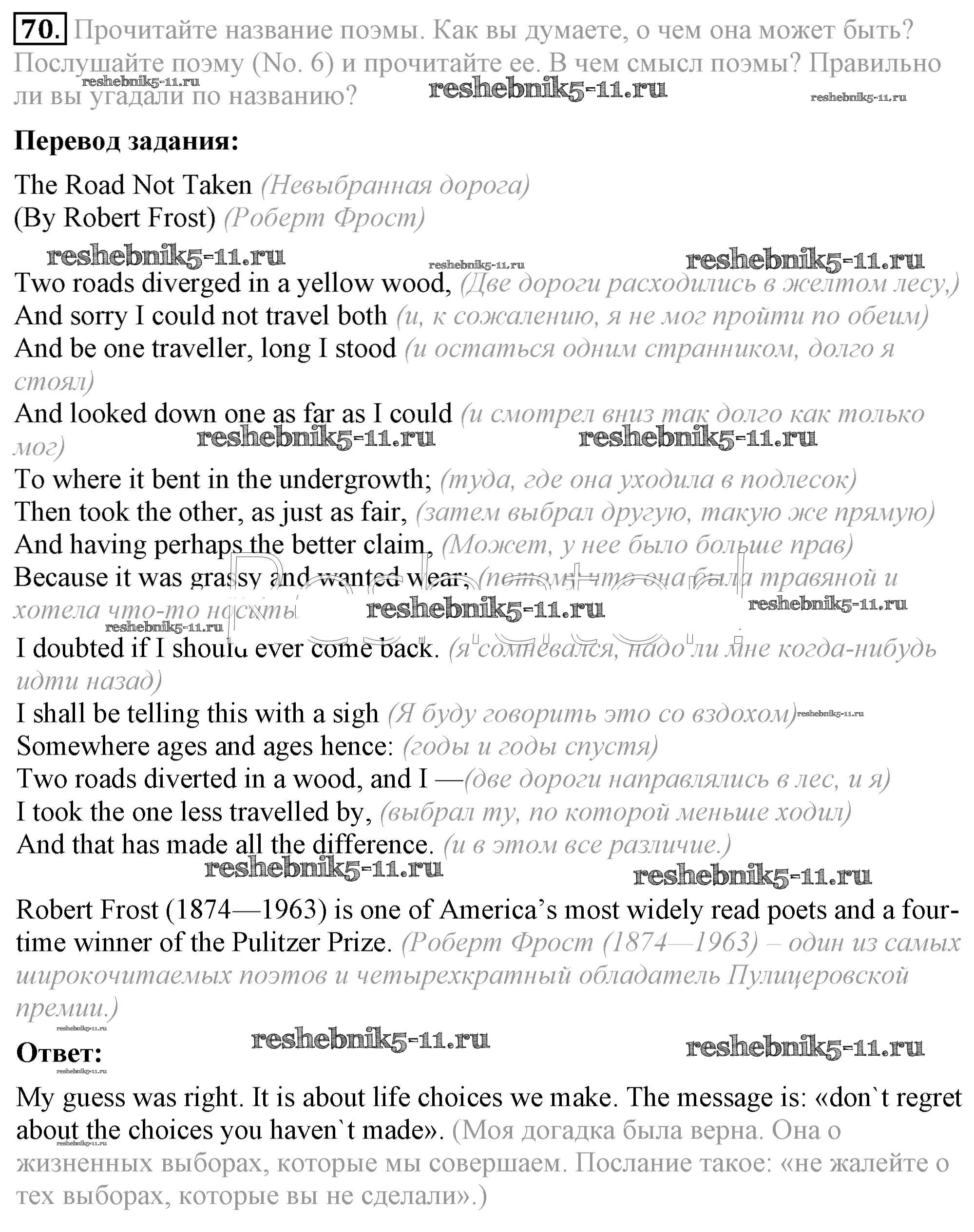 Готовая домашняя работа с ответами по Английскому языку за 8 класс Афанасьева, Михеева Учебник Углубленный уровень Просвещение 2014 ФГОС - Unit 1 70