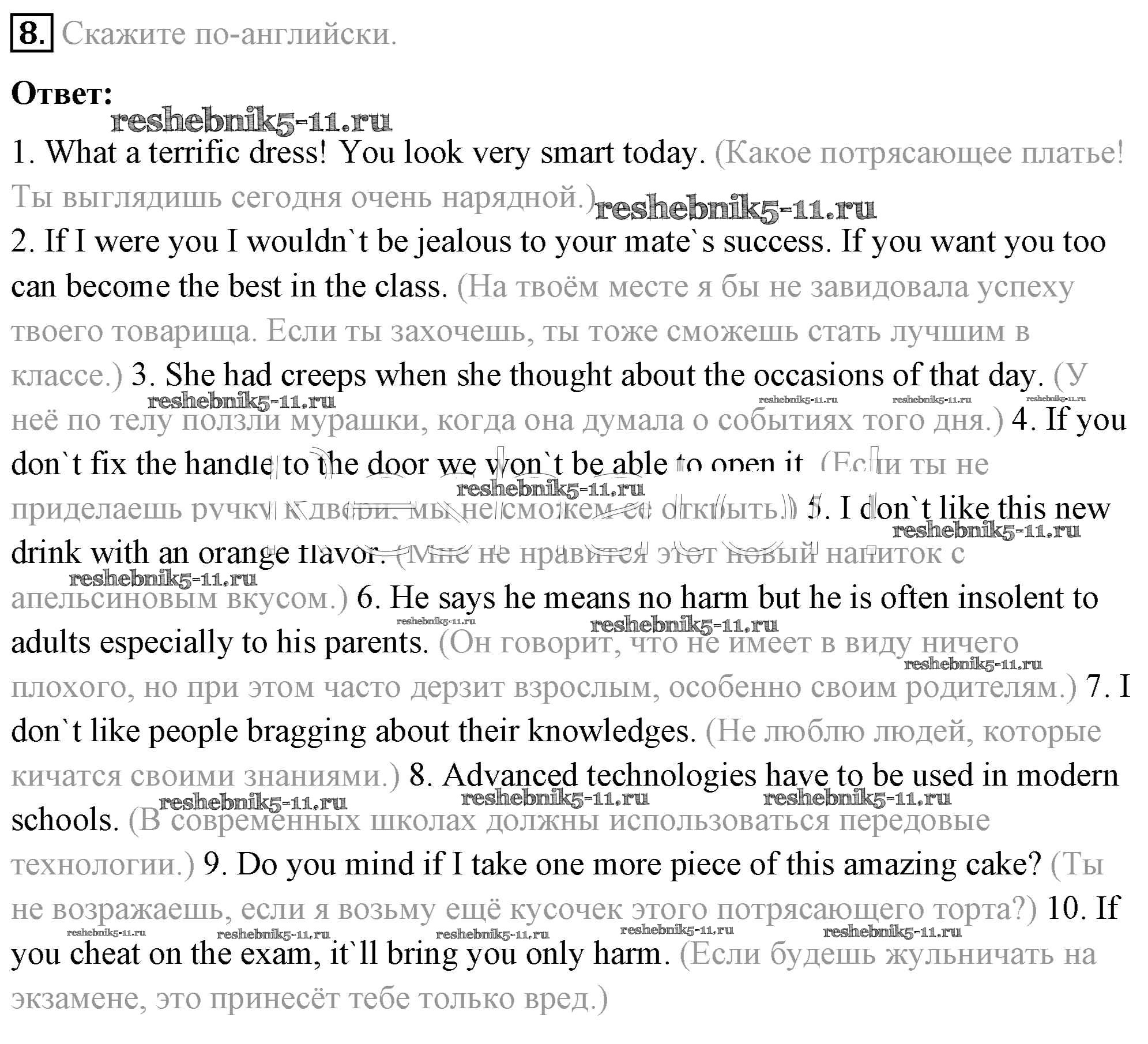Готовая домашняя работа с ответами по Английскому языку за 8 класс Афанасьева, Михеева Учебник Углубленный уровень Просвещение 2014 ФГОС - Unit 2 8