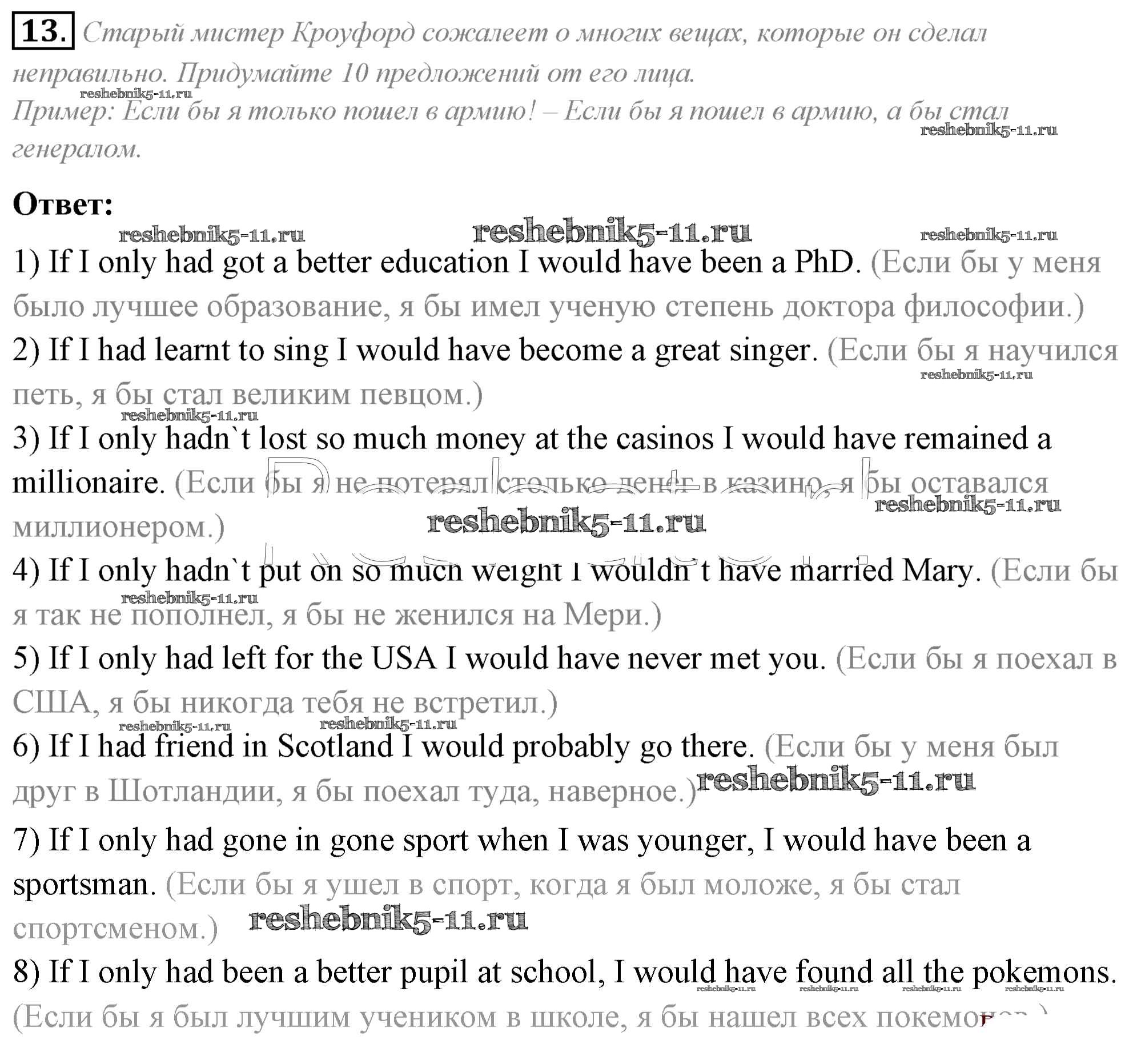 Готовая домашняя работа с ответами по Английскому языку за 8 класс Афанасьева, Михеева Учебник Углубленный уровень Просвещение 2014 ФГОС - Unit 2 13