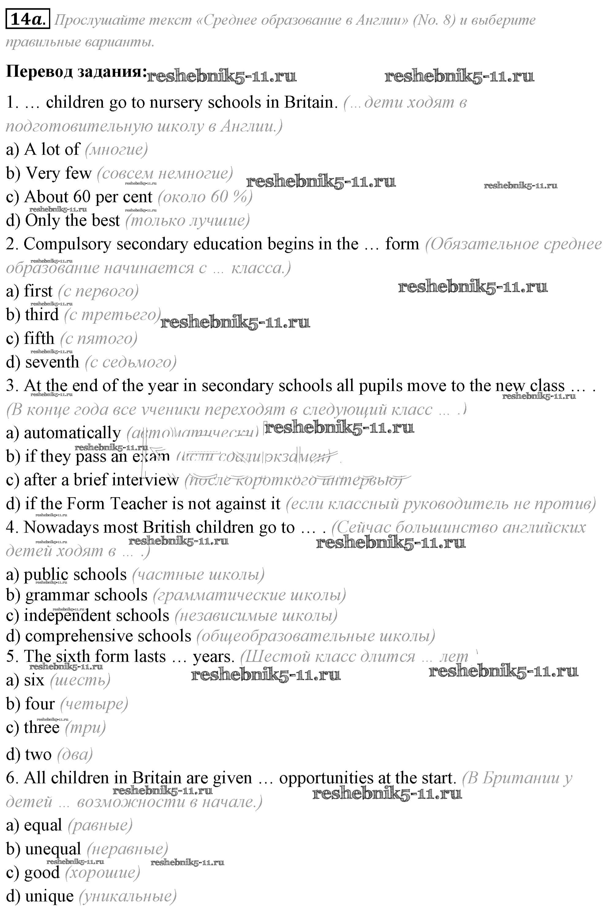 Английский язык за 8 класс Афанасьева Учебник Углубленный уровень Просвещение unit 2 14a