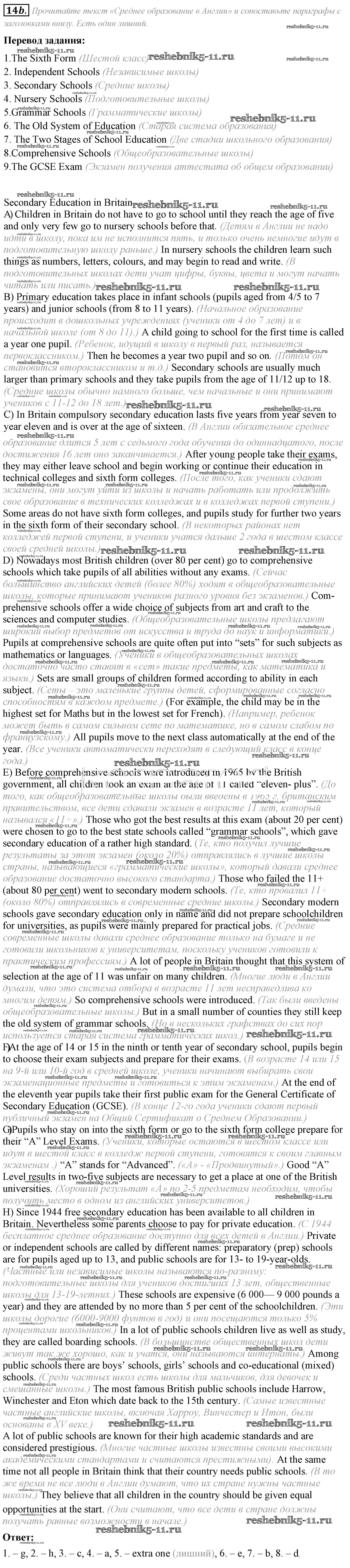 Английский язык за 8 класс Афанасьева Учебник Углубленный уровень Просвещение unit 2 14b