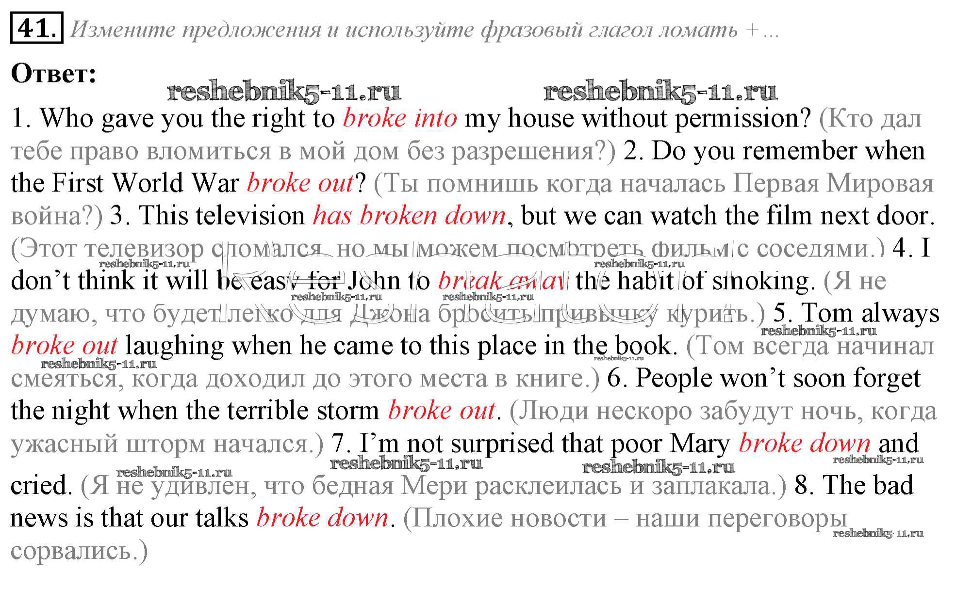 Готовая домашняя работа с ответами по Английскому языку за 8 класс Афанасьева, Михеева Учебник Углубленный уровень Просвещение 2014 ФГОС - Unit 2 41