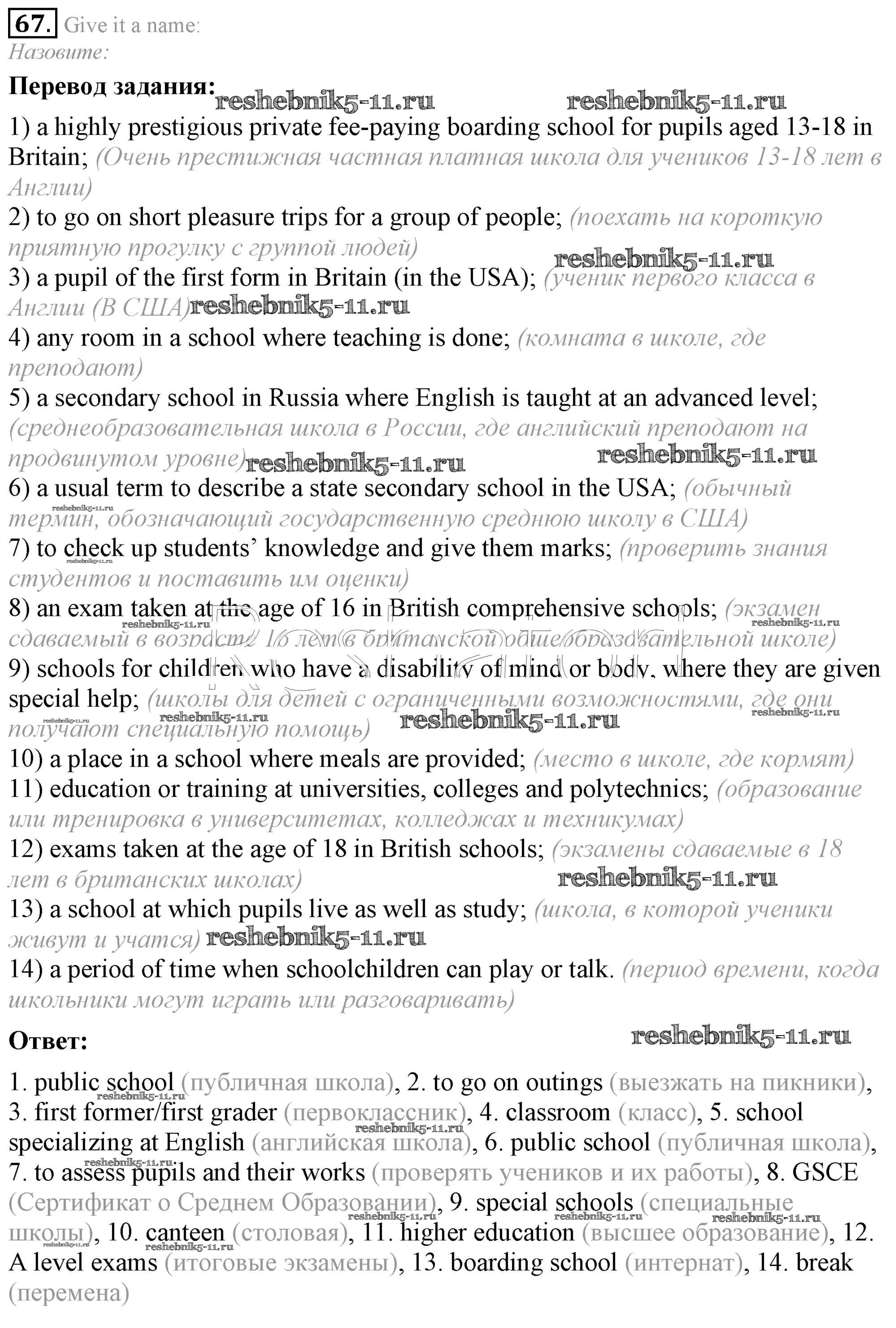 Готовая домашняя работа с ответами по Английскому языку за 8 класс Афанасьева, Михеева Учебник Углубленный уровень Просвещение 2014 ФГОС - Unit 2 67