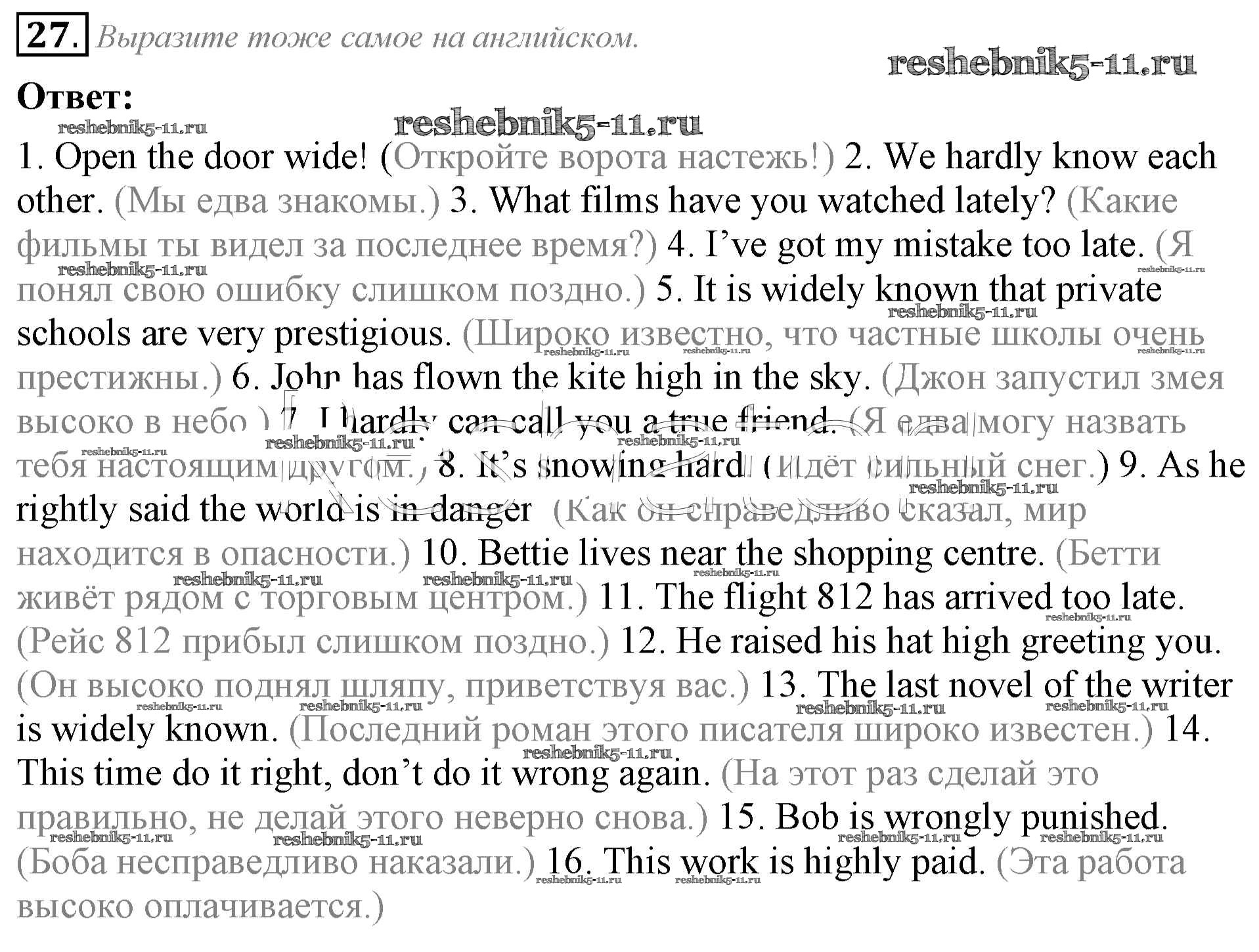 Готовая домашняя работа с ответами по Английскому языку за 8 класс Афанасьева, Михеева Учебник Углубленный уровень Просвещение 2014 ФГОС - Unit 3 27