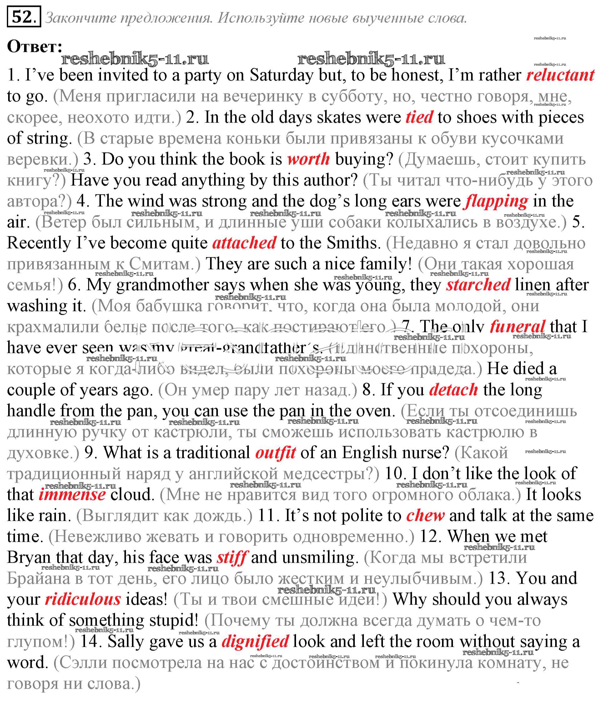 Готовая домашняя работа с ответами по Английскому языку за 8 класс Афанасьева, Михеева Учебник Углубленный уровень Просвещение 2014 ФГОС - Unit 3 52