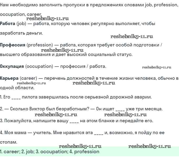 Готовая домашняя работа с ответами по Английскому языку за 8 класс Афанасьева, Михеева Учебник Углубленный уровень Просвещение 2014 ФГОС - Unit 1. Choosing a Career: the World of Jobs 59