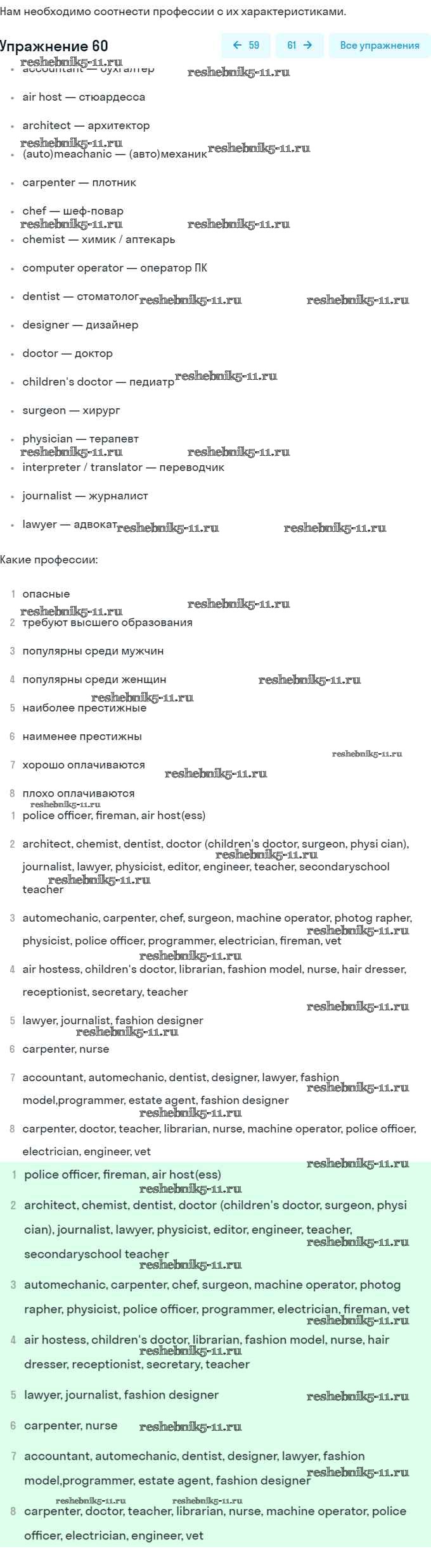 Готовая домашняя работа с ответами по Английскому языку за 8 класс Афанасьева, Михеева Учебник Углубленный уровень Просвещение 2014 ФГОС - Unit 1. Choosing a Career: the World of Jobs 60