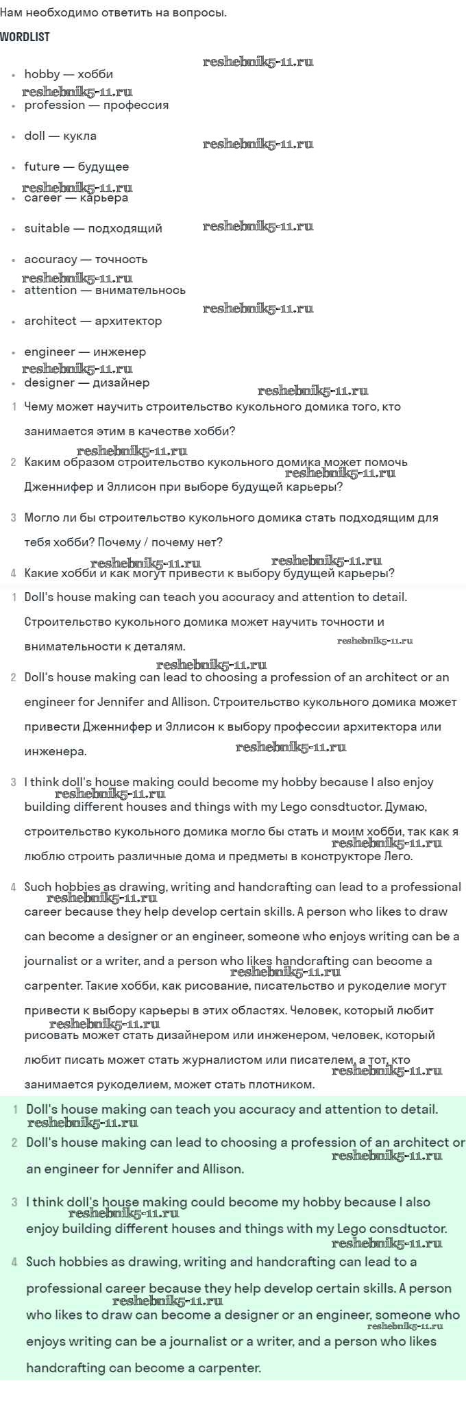 Готовая домашняя работа с ответами по Английскому языку за 8 класс Афанасьева, Михеева Учебник Углубленный уровень Просвещение 2014 ФГОС - Unit 1. Choosing a Career: the World of Jobs 66