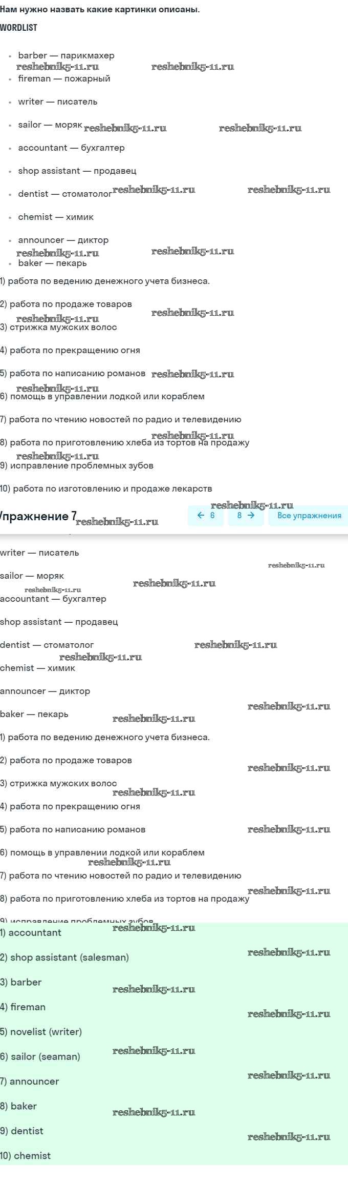 Готовая домашняя работа с ответами по Английскому языку за 8 класс Афанасьева, Михеева Учебник Углубленный уровень Просвещение 2014 ФГОС - Unit 1. Choosing a Career: the World of Jobs 7