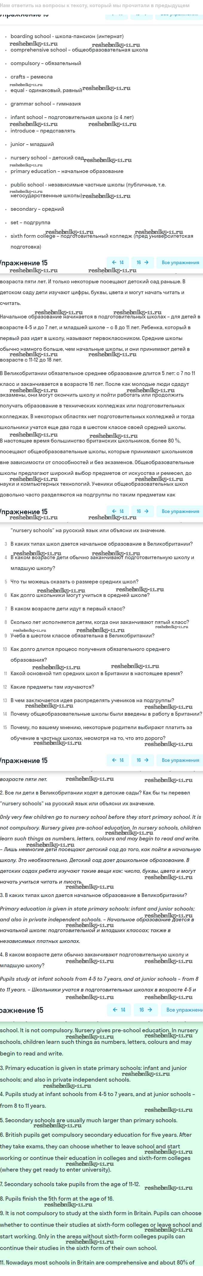Готовая домашняя работа с ответами по Английскому языку за 8 класс Афанасьева, Михеева Учебник Углубленный уровень Просвещение 2014 ФГОС - Unit 2. Education: The World of Learning 15