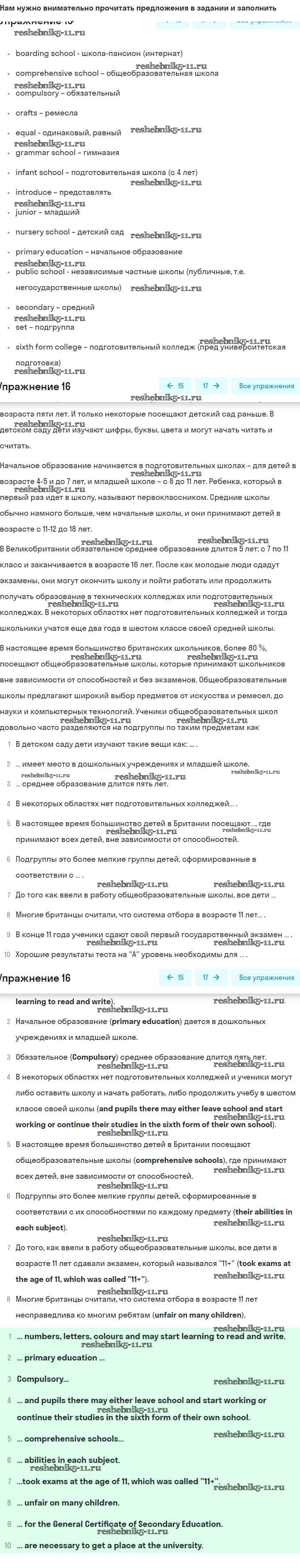 Готовая домашняя работа с ответами по Английскому языку за 8 класс Афанасьева, Михеева Учебник Углубленный уровень Просвещение 2014 ФГОС - Unit 2. Education: The World of Learning 16