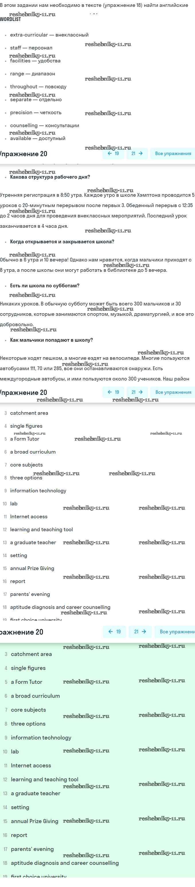 Готовая домашняя работа с ответами по Английскому языку за 8 класс Афанасьева, Михеева Учебник Углубленный уровень Просвещение 2014 ФГОС - Unit 2. Education: The World of Learning 20