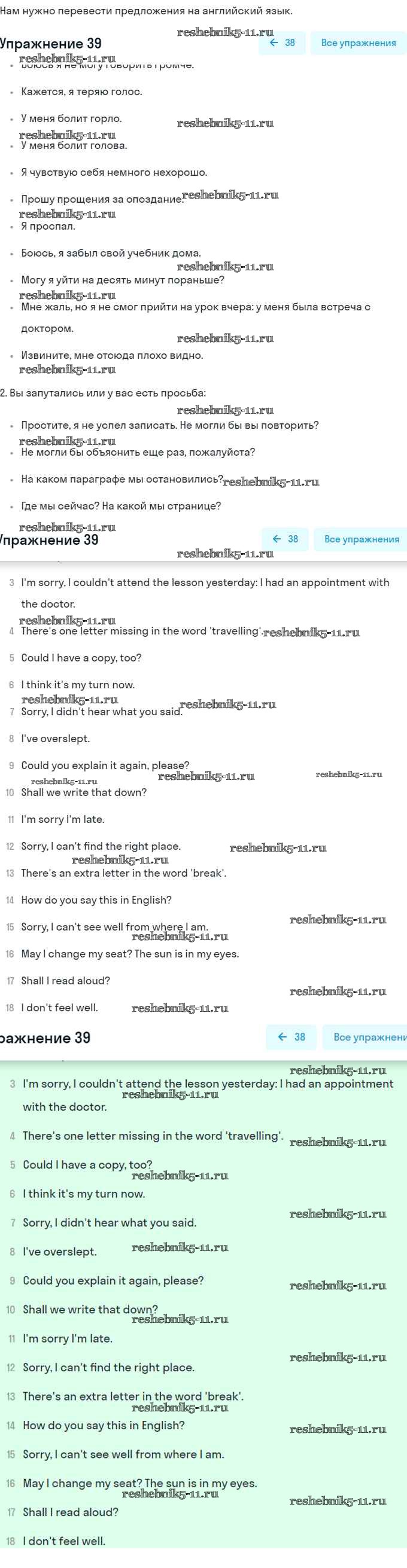 Готовая домашняя работа с ответами по Английскому языку за 8 класс Афанасьева, Михеева Учебник Углубленный уровень Просвещение 2014 ФГОС - Unit 2. Education: The World of Learning 39