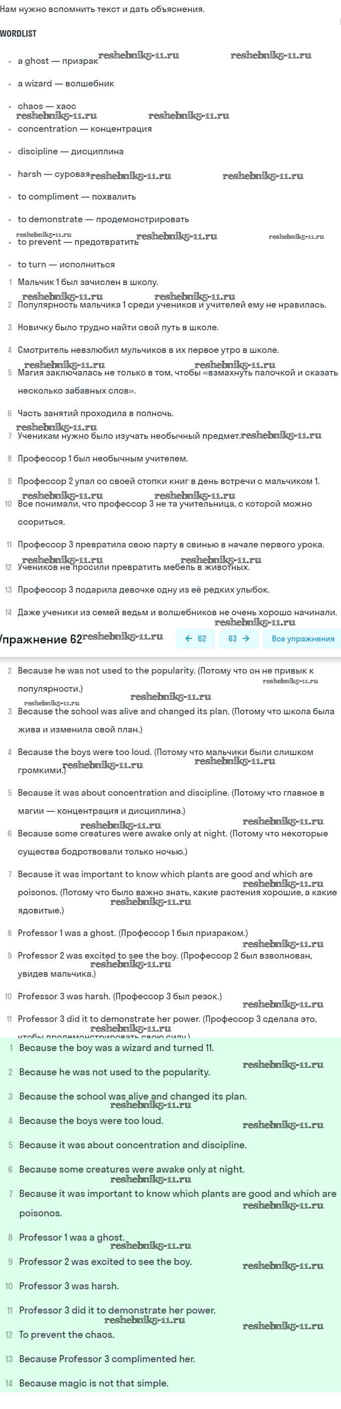 Готовая домашняя работа с ответами по Английскому языку за 8 класс Афанасьева, Михеева Учебник Углубленный уровень Просвещение 2014 ФГОС - Unit 2. Education: The World of Learning 62