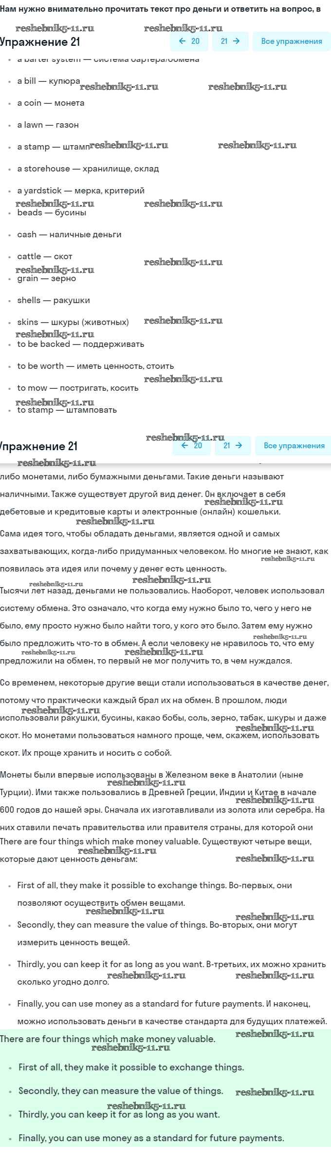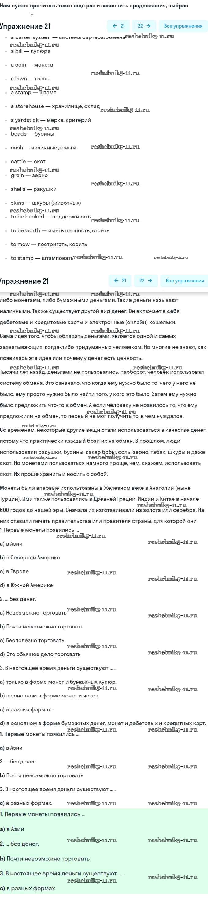 Готовая домашняя работа с ответами по Английскому языку за 8 класс Афанасьева, Михеева Учебник Углубленный уровень Просвещение 2014 ФГОС - Unit 3. Shopping: The World of Money 21