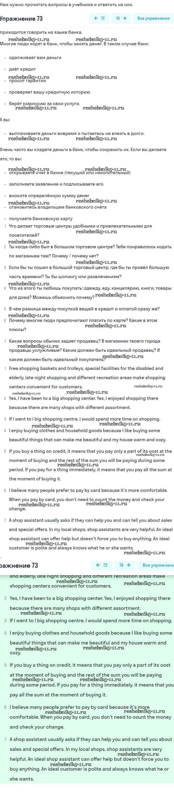 Готовая домашняя работа с ответами по Английскому языку за 8 класс Афанасьева, Михеева Учебник Углубленный уровень Просвещение 2014 ФГОС - Unit 3. Shopping: The World of Money 73