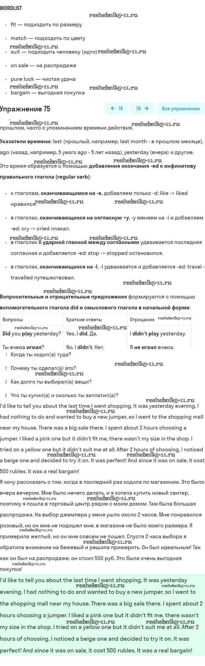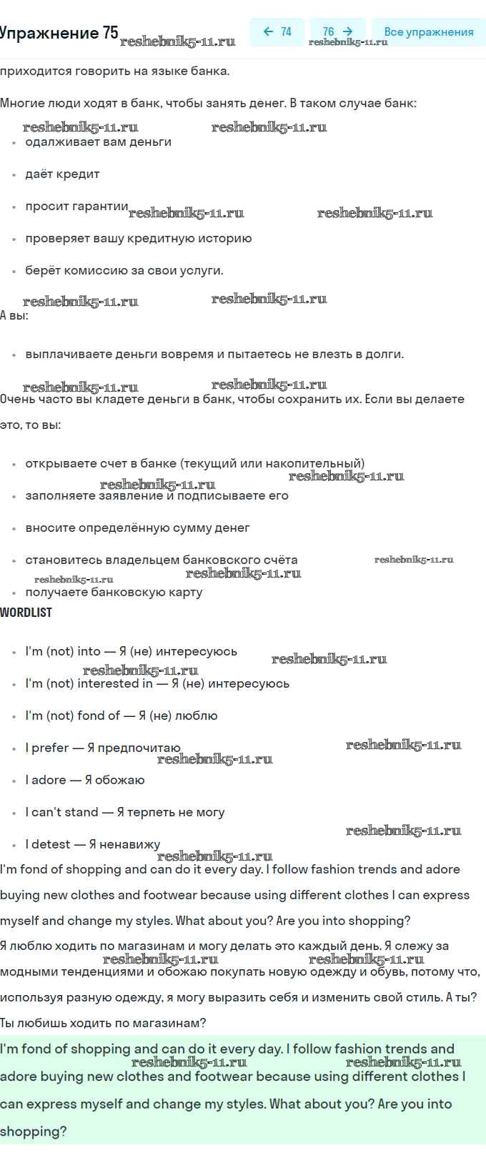 Готовая домашняя работа с ответами по Английскому языку за 8 класс Афанасьева, Михеева Учебник Углубленный уровень Просвещение 2014 ФГОС - Unit 3. Shopping: The World of Money 75