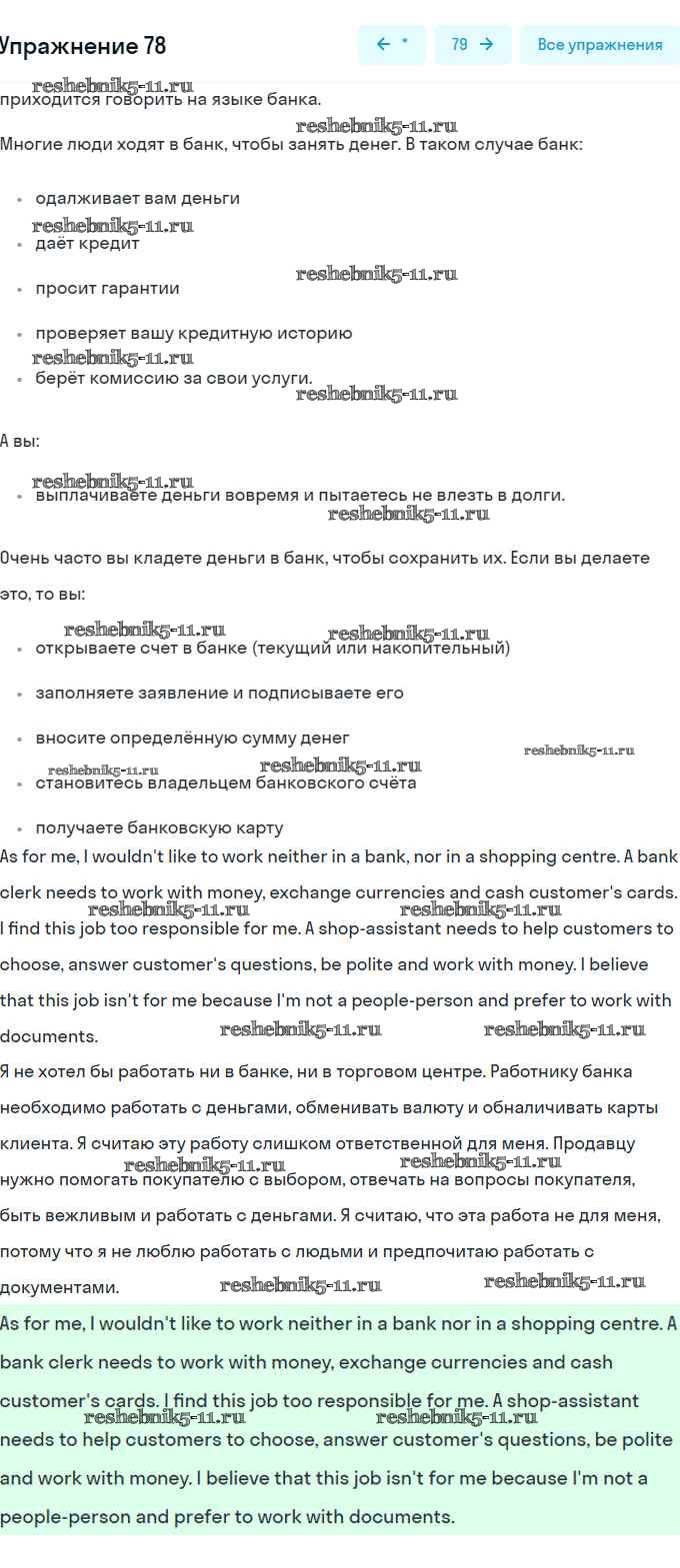 Готовая домашняя работа с ответами по Английскому языку за 8 класс Афанасьева, Михеева Учебник Углубленный уровень Просвещение 2014 ФГОС - Unit 3. Shopping: The World of Money 78