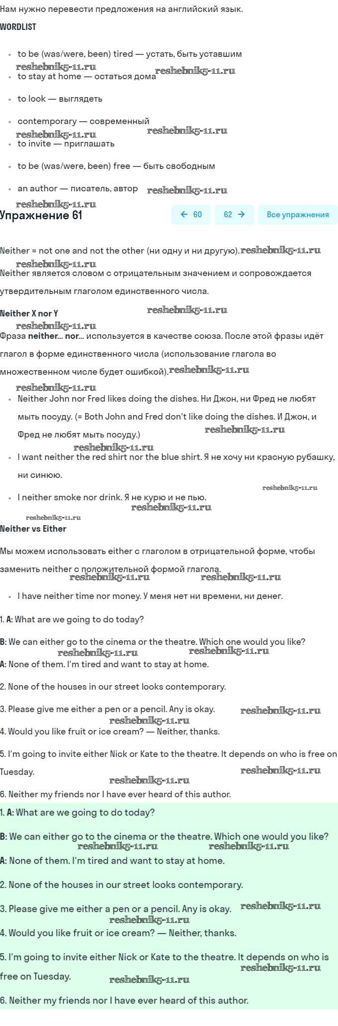 Готовая домашняя работа с ответами по Английскому языку за 8 класс Афанасьева, Михеева Учебник Углубленный уровень Просвещение 2014 ФГОС - Unit 4. Fascination and Challenge: The World of Science and Technology 61