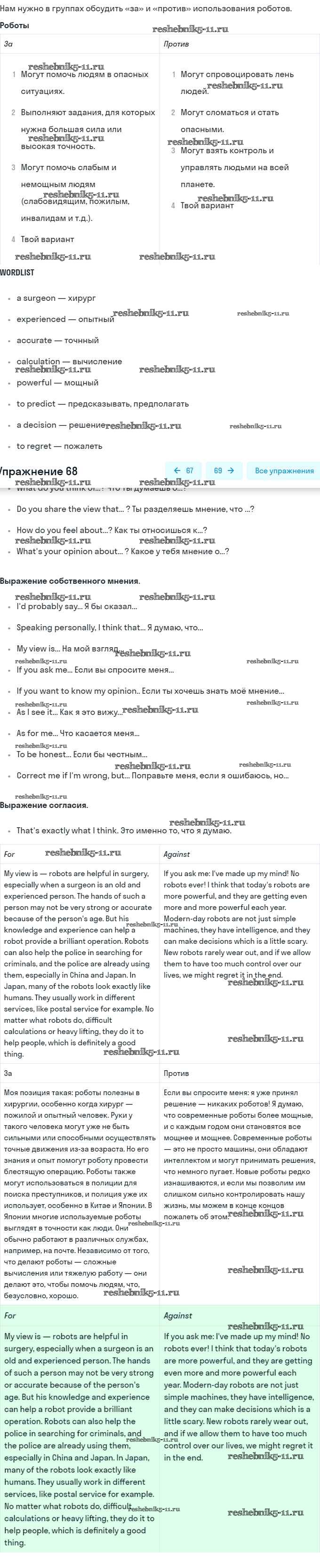 Готовая домашняя работа с ответами по Английскому языку за 8 класс Афанасьева, Михеева Учебник Углубленный уровень Просвещение 2014 ФГОС - Unit 4. Fascination and Challenge: The World of Science and Technology 68