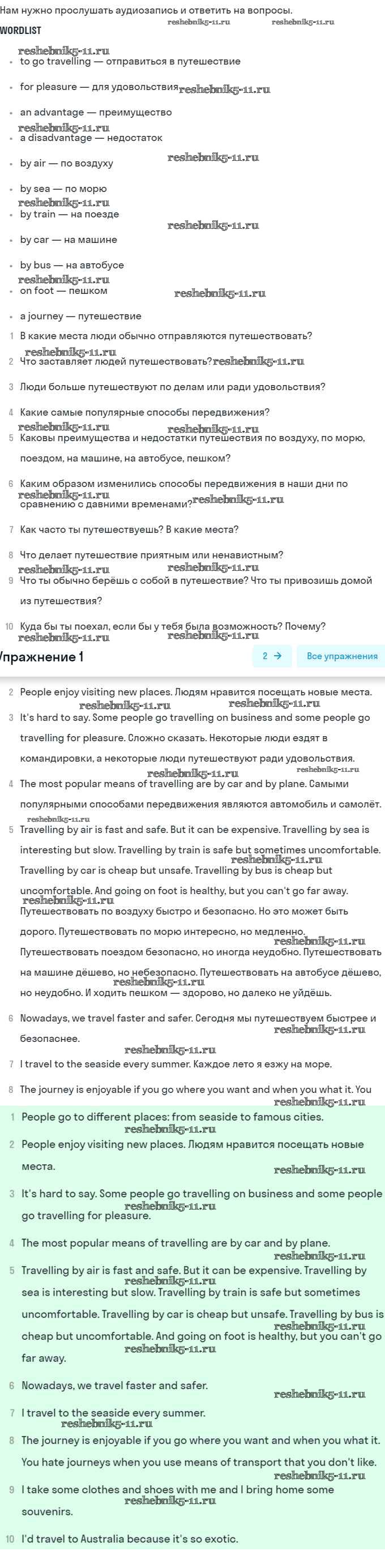 Готовая домашняя работа с ответами по Английскому языку за 8 класс Афанасьева, Михеева Учебник Углубленный уровень Просвещение 2014 ФГОС - Unit 5. Going to Places: The World of Travelling 1
