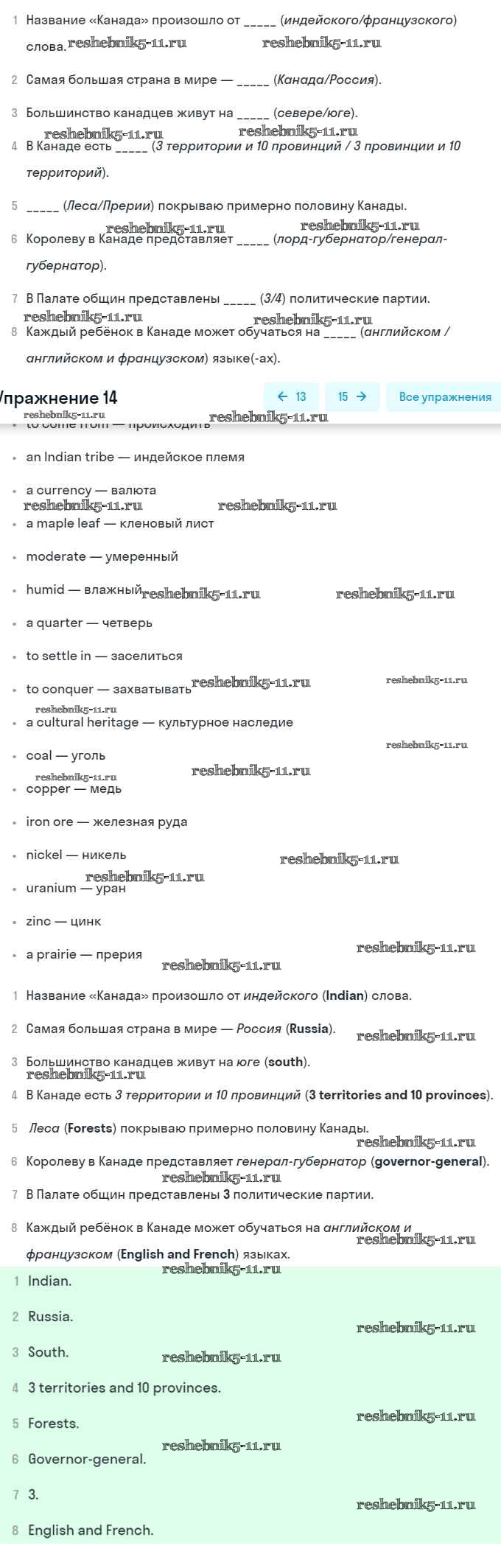 Готовая домашняя работа с ответами по Английскому языку за 8 класс Афанасьева, Михеева Учебник Углубленный уровень Просвещение 2014 ФГОС - Unit 5. Going to Places: The World of Travelling 14