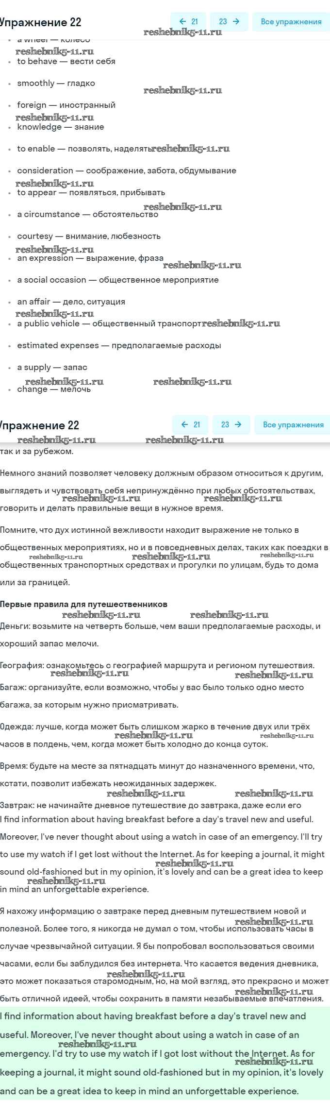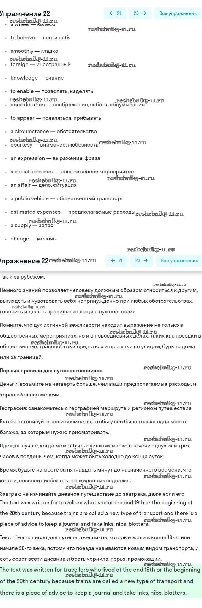 Готовая домашняя работа с ответами по Английскому языку за 8 класс Афанасьева, Михеева Учебник Углубленный уровень Просвещение 2014 ФГОС - Unit 5. Going to Places: The World of Travelling 22