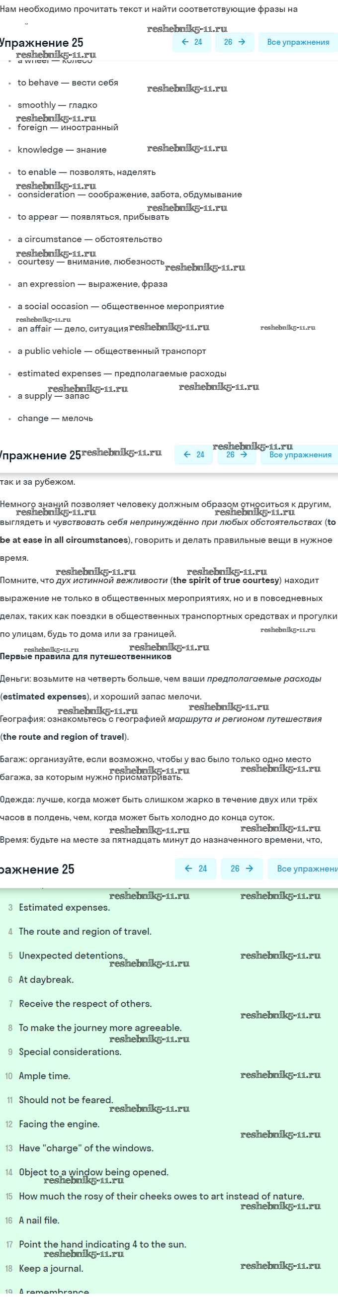 Готовая домашняя работа с ответами по Английскому языку за 8 класс Афанасьева, Михеева Учебник Углубленный уровень Просвещение 2014 ФГОС - Unit 5. Going to Places: The World of Travelling 25