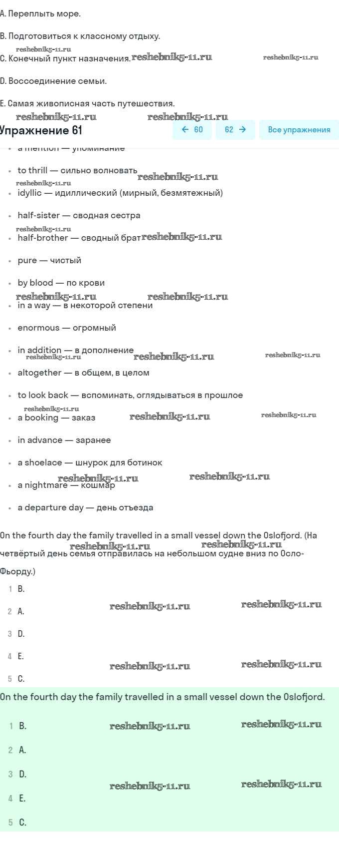 Готовая домашняя работа с ответами по Английскому языку за 8 класс Афанасьева, Михеева Учебник Углубленный уровень Просвещение 2014 ФГОС - Unit 5. Going to Places: The World of Travelling 61