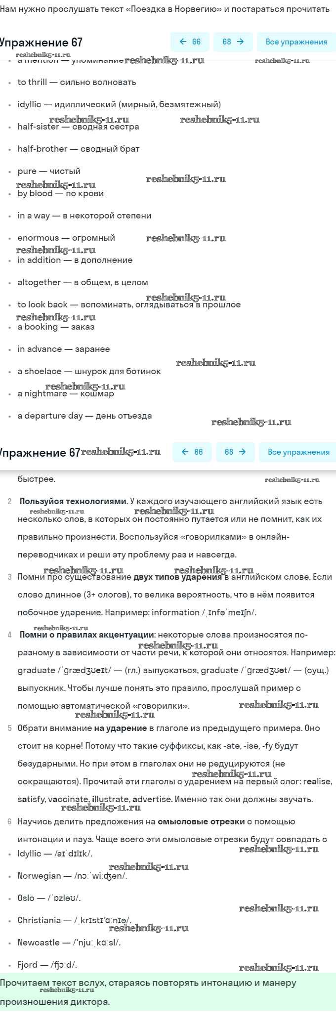 Готовая домашняя работа с ответами по Английскому языку за 8 класс Афанасьева, Михеева Учебник Углубленный уровень Просвещение 2014 ФГОС - Unit 5. Going to Places: The World of Travelling 67