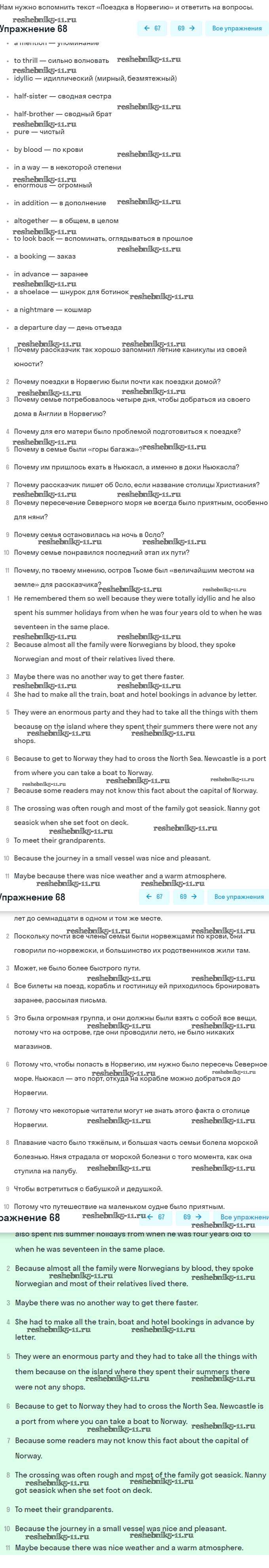 Готовая домашняя работа с ответами по Английскому языку за 8 класс Афанасьева, Михеева Учебник Углубленный уровень Просвещение 2014 ФГОС - Unit 5. Going to Places: The World of Travelling 68