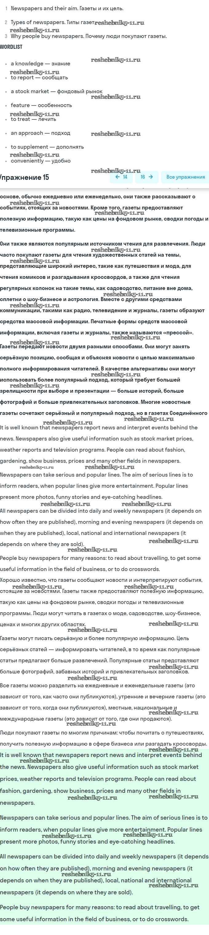 Готовая домашняя работа с ответами по Английскому языку за 8 класс Афанасьева, Михеева Учебник Углубленный уровень Просвещение 2014 ФГОС - Unit 6. Newspapers and Television: The World of Mass Media 15
